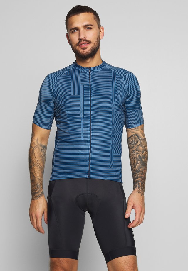 Popsockt stand with blue top and black base.